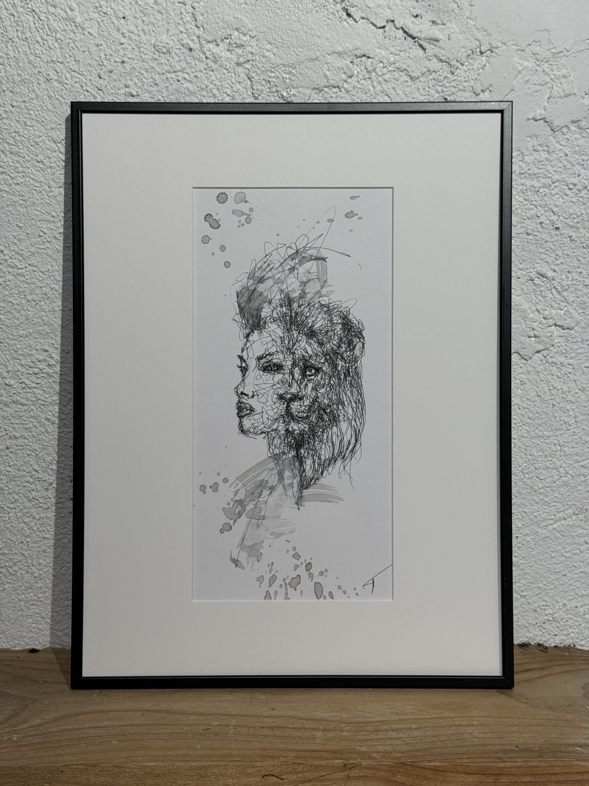 Œuvre originale travaillée sur papier au stylo à bille et à l’acrylique. Délivrée avec le certificat d’authenticité. Format 20×20 cm encadrée sous verre (30×40 cm)