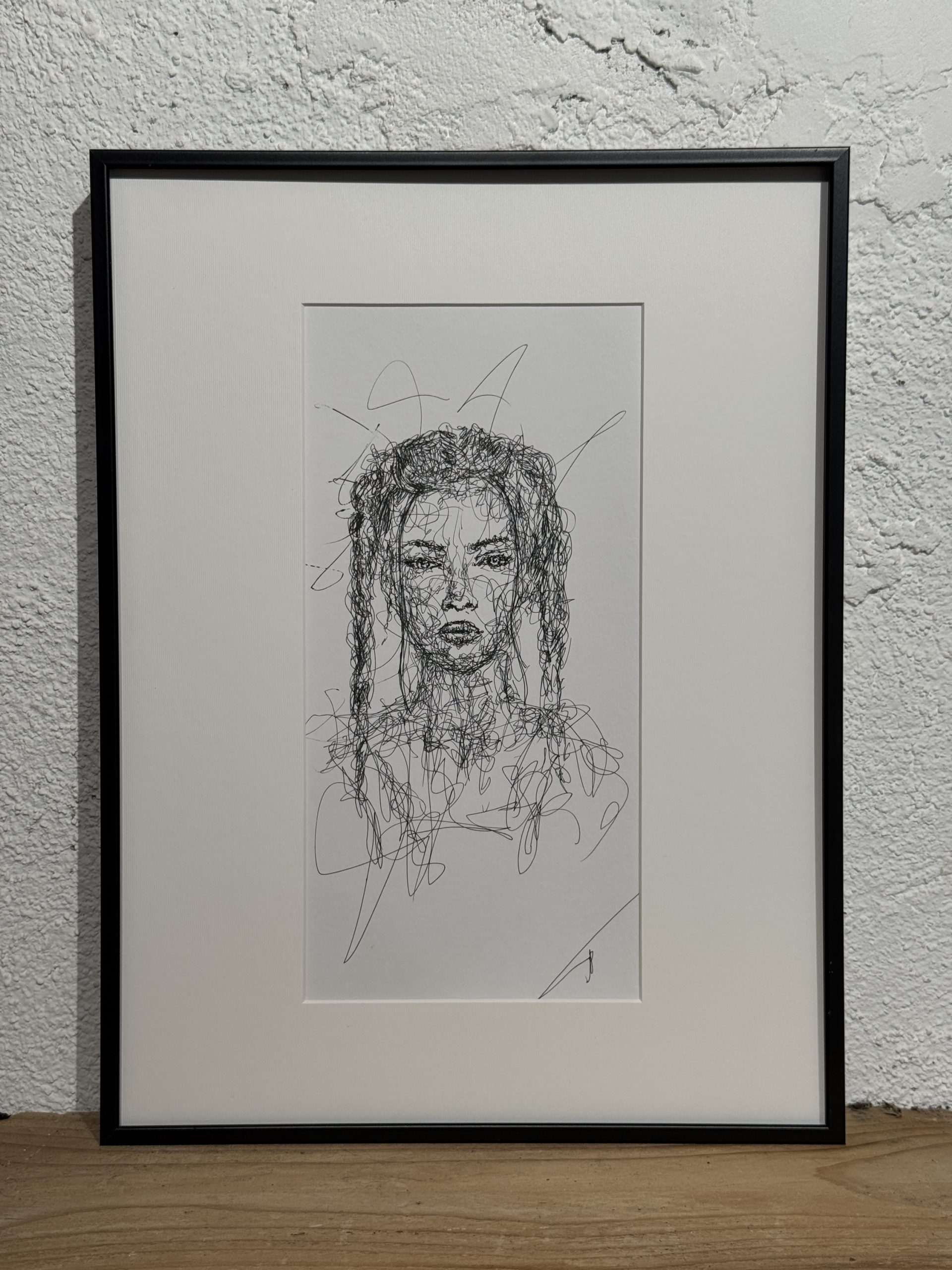 Œuvre originale travaillée sur papier au stylo à bille et à l’acrylique. Délivrée avec le certificat d’authenticité. Format 14×29 cm encadrée sous verre (30×40 cm)